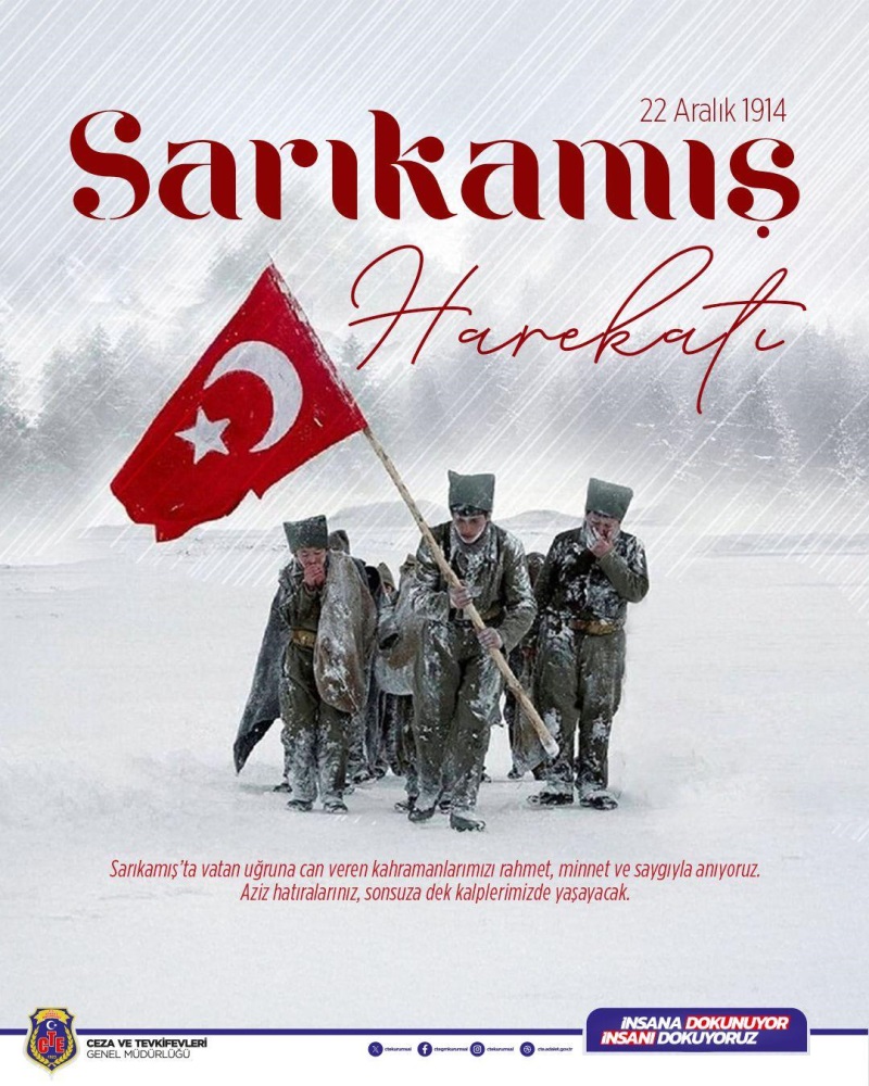 Sarıkamış’ta vatan uğruna gözünü kırpmadan şehadete yürüyen kahraman askerlerimizi rahmet, minnet ve saygıyla anıyoruz.